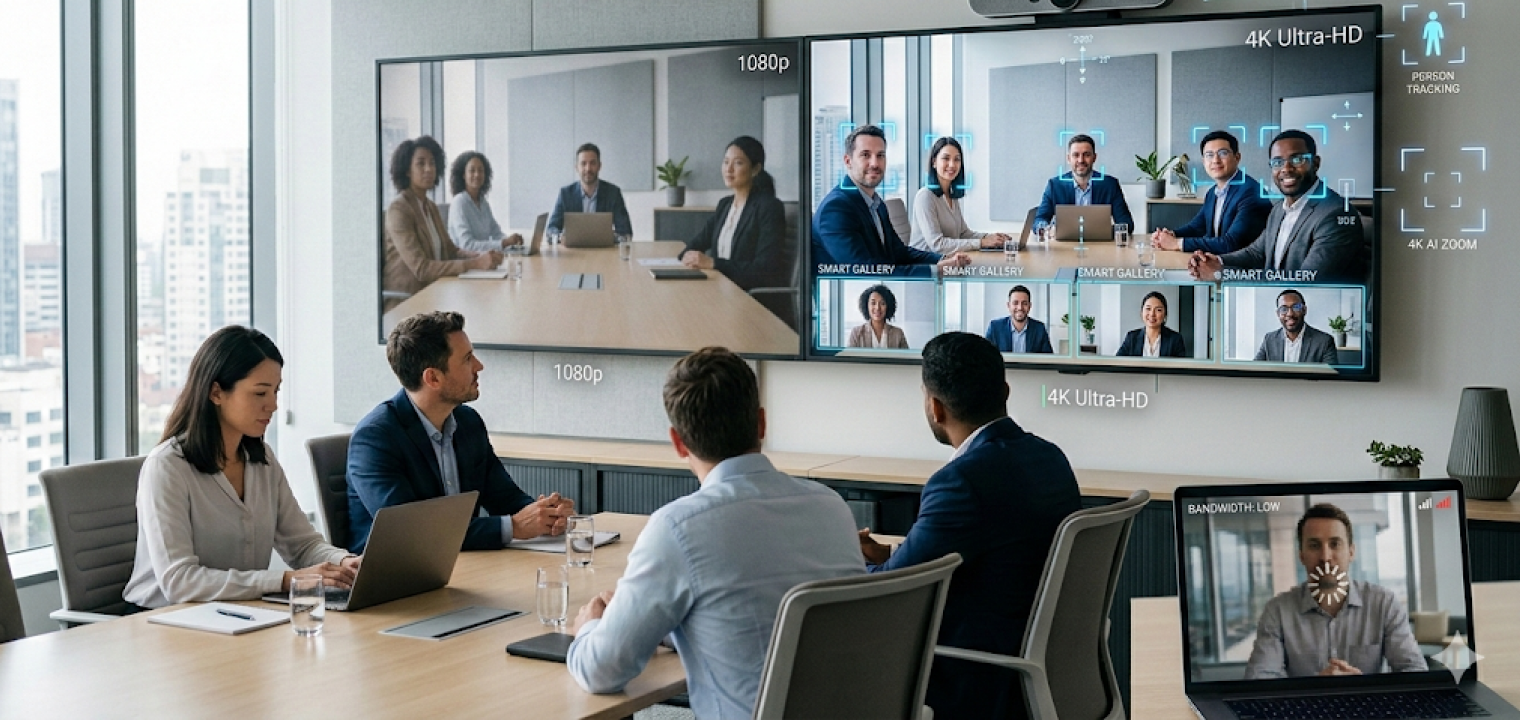 At minimum, look for 1080p video, and treat 4K as the preference for rooms where faces, small gestures, or written content matter. Resolution isn’t only about image sharpness; it’s about cognitive effort. When remote participants have to squint to interpret the room, they contribute less, and they fatigue faster.
