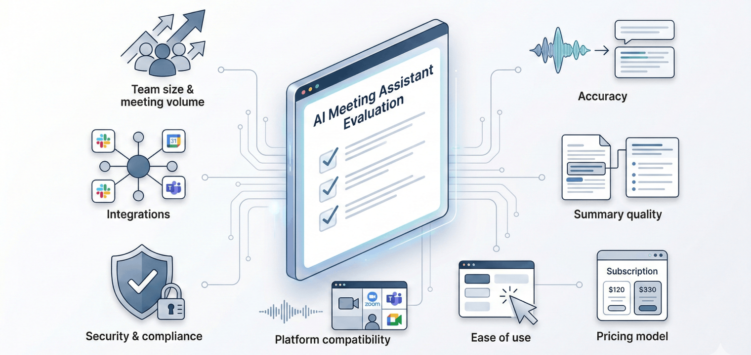 Selecting the appropriate AI meeting tools requires assessing several factors that determine fit for your organization: