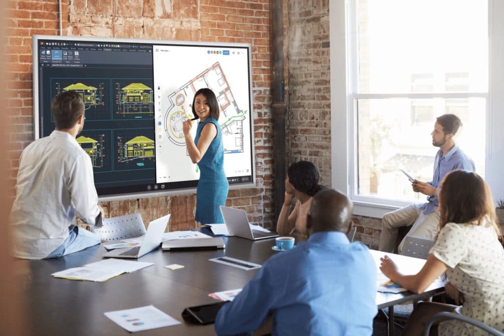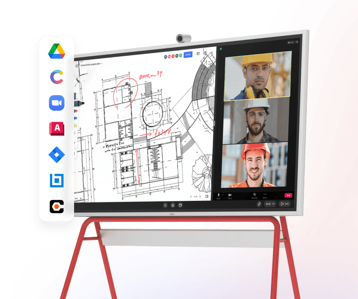 Whether you’re currently using architecture software or planning to adopt new solutions, nearly every major tool integrates seamlessly with the Vibe Board S1, making it the premier architecture software collaboration hub. It transforms how architecture teams interact with their software tools. This 55″ 4K collaborative whiteboard turns static designs into collaborative conversations, making it the perfect companion to your technical workflow. Pull up AutoCAD drawings, SketchUp models, or Matterport scans directly on the touchscreen where everyone can annotate, sketch, and problem-solve together on a digital whiteboard. No more disconnected feedback or misinterpreted comments—just clear visual communication that keeps projects moving forward by preventing time-consuming rework. Remote team members join the same canvas in real-time, maintaining creative momentum regardless of location.
