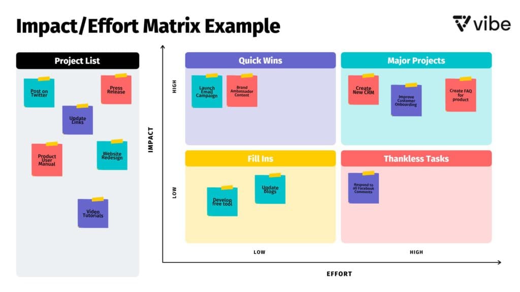 Simplify the process of building your Impact Effort Matrix with Vibe.