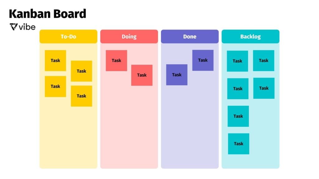 With Kanban’s emphasis on visual management, teams often make use of visuals like boards to track the progress of tasks. It may be a physical board with sticky notes, or it could be an interactive whiteboard software with different categories.