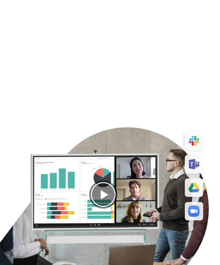 Vibe Board S1 has two built-in speakers, but no built-in microphone. The (optional) SmartCam C1 was designed for Vibe S1, and comes equipped with 6 omni-directional microphones, as well as noise and echo cancellation. Vibe Boards are also compatible with most USB-connected cameras and microphones, such as Logitech BRIO, Owl Camera, Polycom Studio, and more.