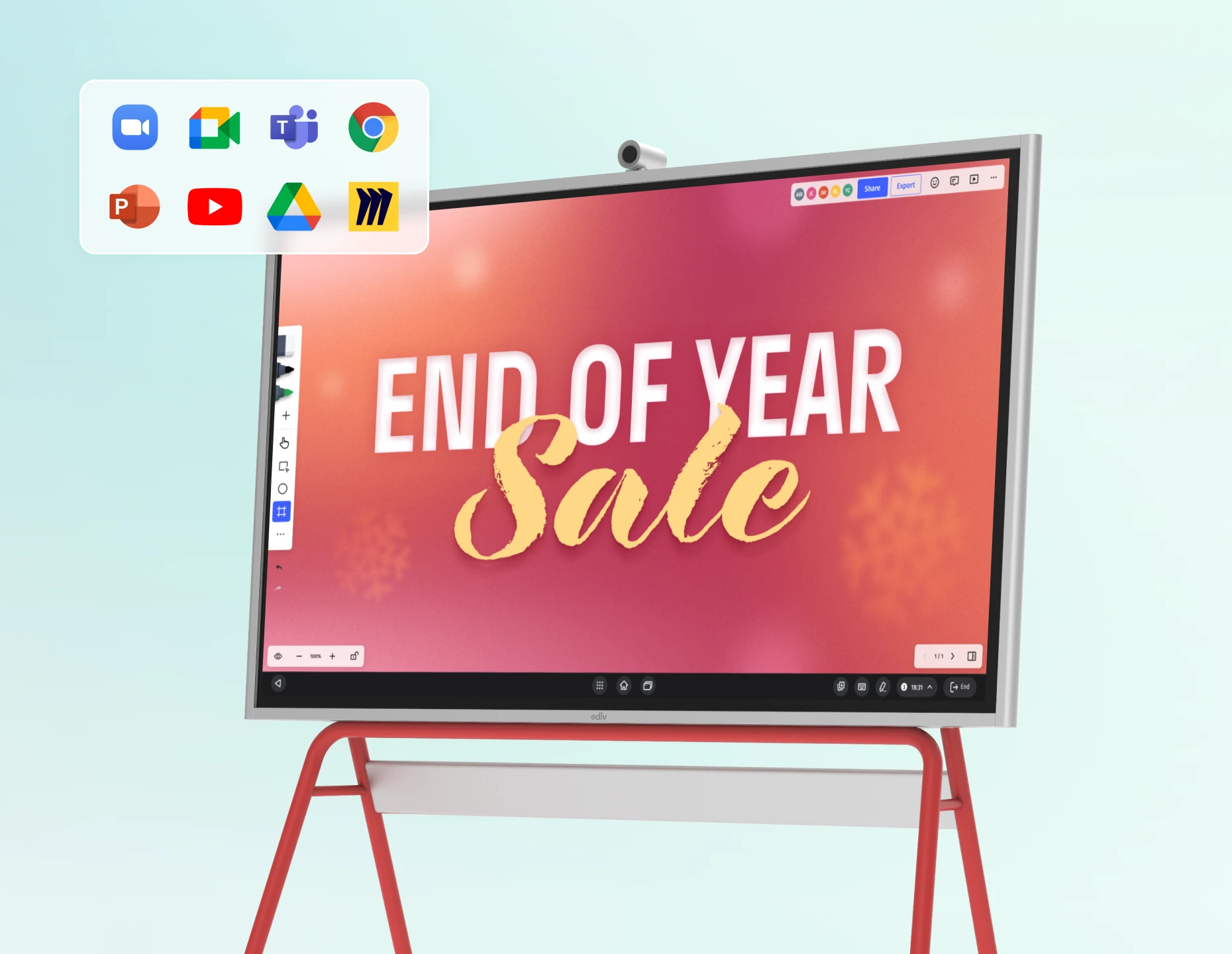 Yes! Vibe Board S1 supports Microsoft 365 apps. You can directly access and edit Office files through the Chrome browser, or install the Microsoft Office Android Tablet Version on Vibe Board for more touchscreen capabilities. Microsoft Teams is also supported. Vibe Board also supports Google Workspace apps, so you can open, edit, and auto-save Google Docs, Slides, Sheets, and more.