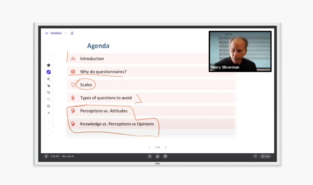 Vibe’s annotation feature also allows Dr. Silverman to illustrate his points during Zoom sessions or on PowerPoint slides. His students seem to appreciate the annotation tools as well, with one student in particular noting, "I liked that words were stressed by underlines or circles while explaining important points." This seemingly small detail goes a long way in effective communication. Dr. Silverman plans on using it often as more of his conferences and training workshops become virtual events.