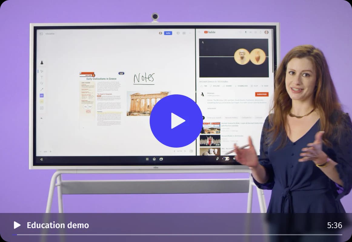 | Brand | Vibe Board S1 55″ | Google Jamboard 55″ | SMART Board® 6000 Series 65″ | Promethean® ActivPanel® Nickel 65″ | Samsung Flip 2 55″ |