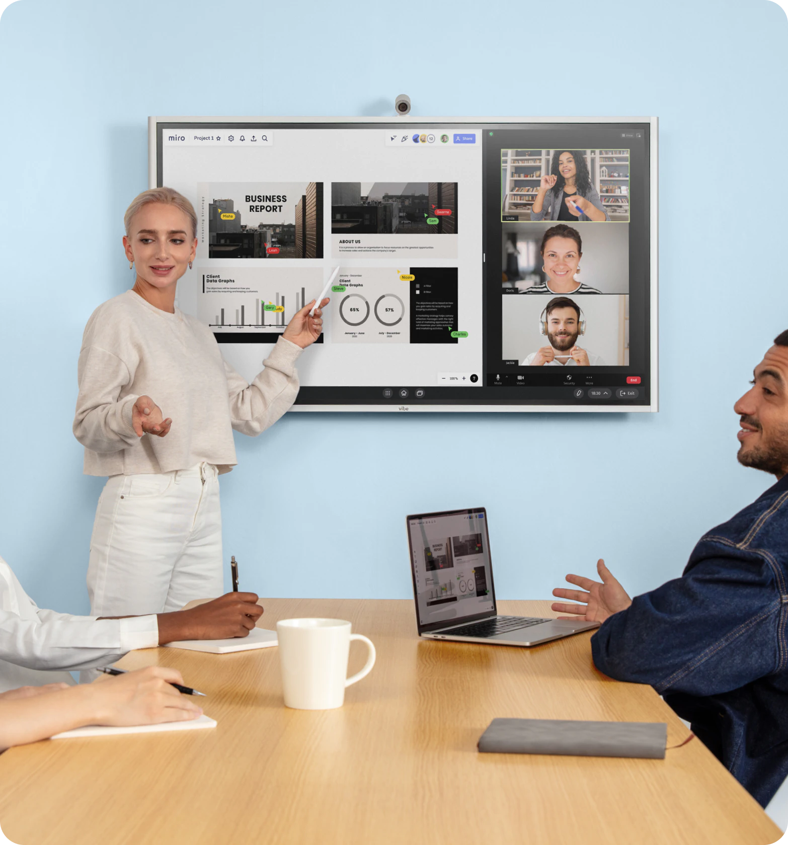 “Vibe Board allows me to mirror Miro contents in my person meetings so that my attendees have the same engaging experience as if they were all in the room together. Using my Vibe for collaboration with my team, also for planning, goal setting, and ideating is truly a game-changer.”“Vibe Board allows me to mirror Miro contents in my person meetings so that my attendees have the same engaging experience as if they were all in the room together. Using my Vibe for collaboration with my team, also for planning, goal setting, and ideating is truly a game-changer.”Pam Pippin, HR Consultant at Pippin Resource GroupPam Pippin,