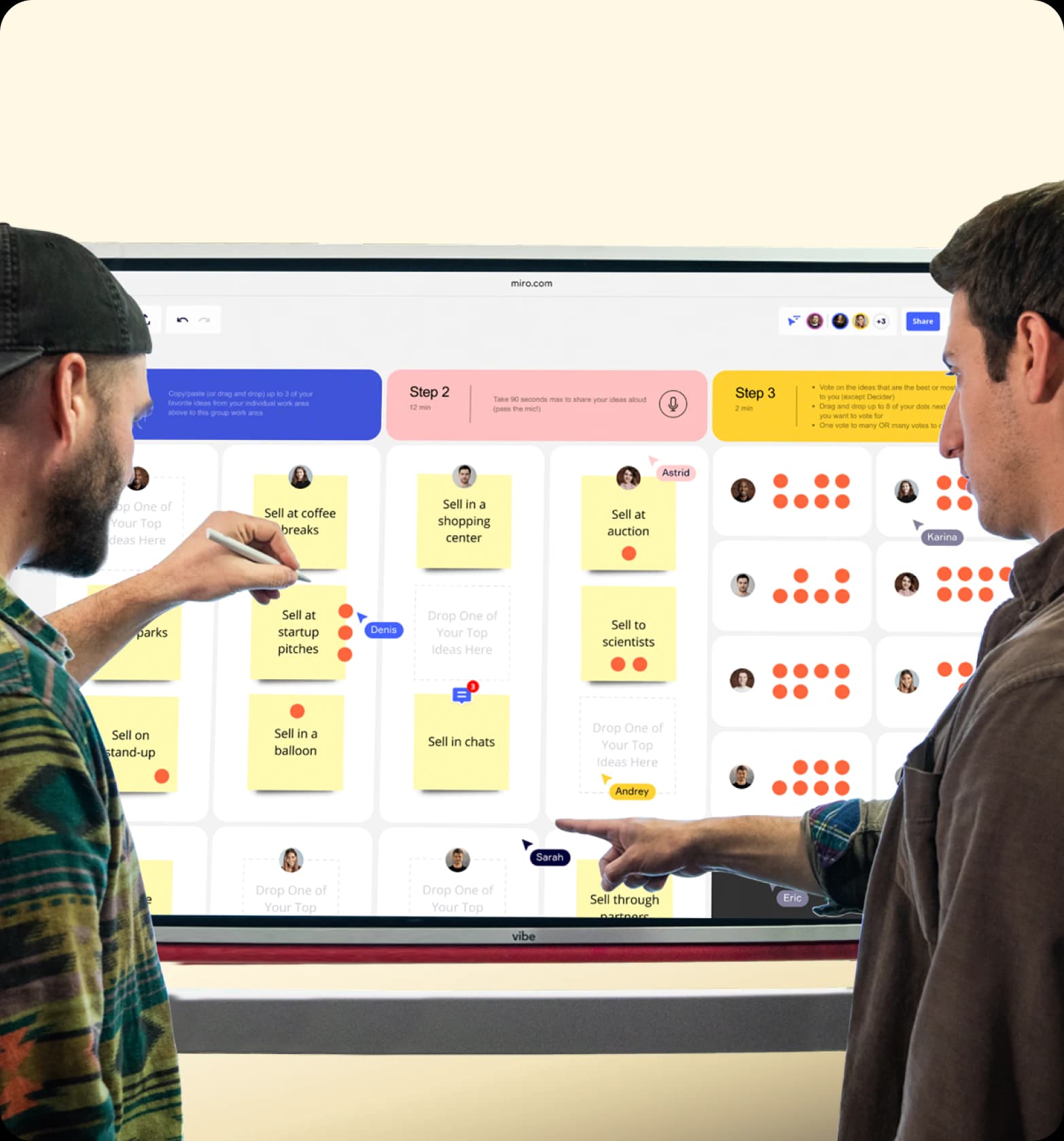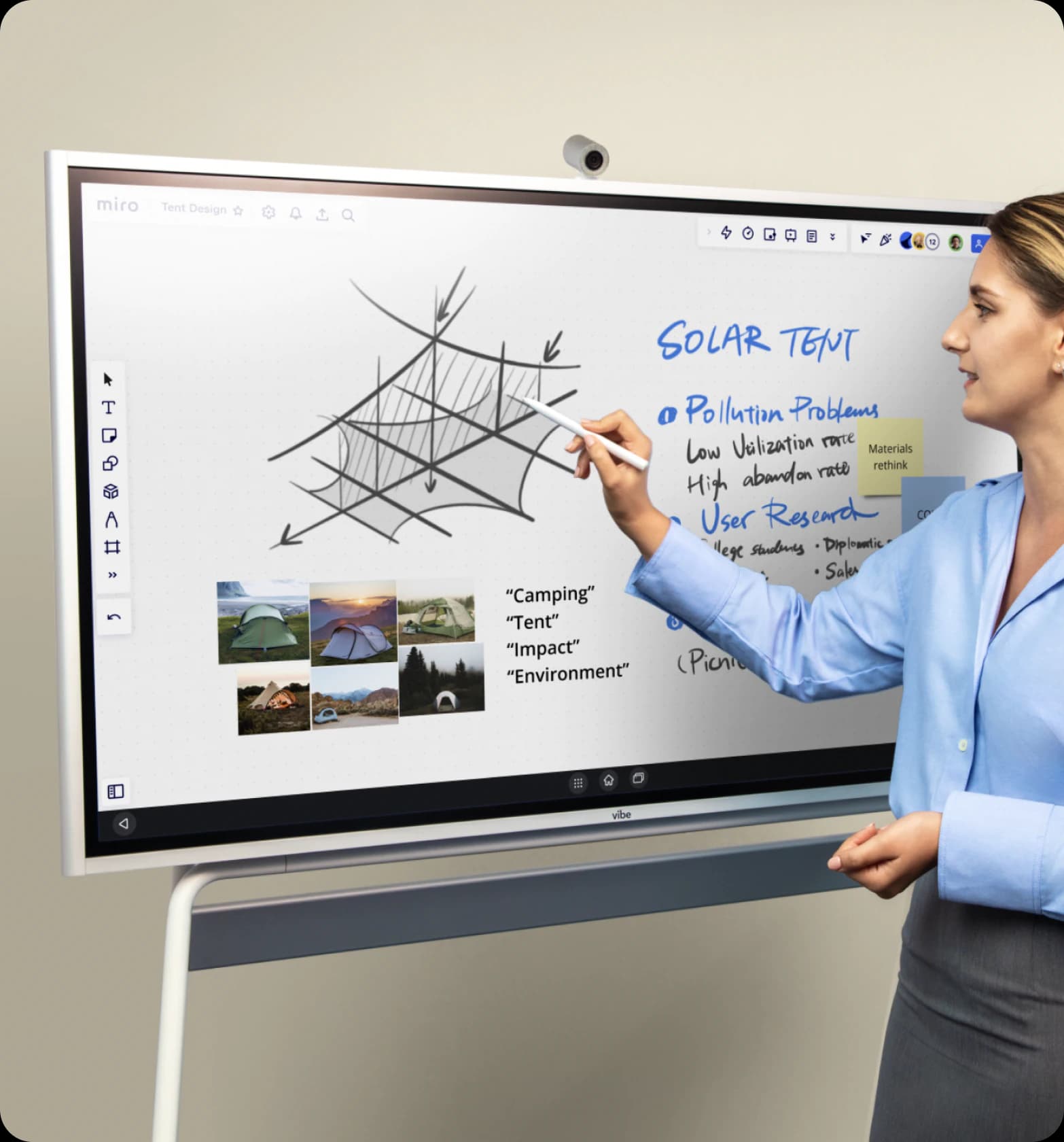 “Vibe Board allows me to mirror Miro contents in my person meetings so that my attendees have the same engaging experience as if they were all in the room together. Using my Vibe for collaboration with my team, also for planning, goal setting, and ideating is truly a game-changer.”“Vibe Board allows me to mirror Miro contents in my person meetings so that my attendees have the same engaging experience as if they were all in the room together. Using my Vibe for collaboration with my team, also for planning, goal setting, and ideating is truly a game-changer.”Pam Pippin, HR Consultant at Pippin Resource GroupPam Pippin,