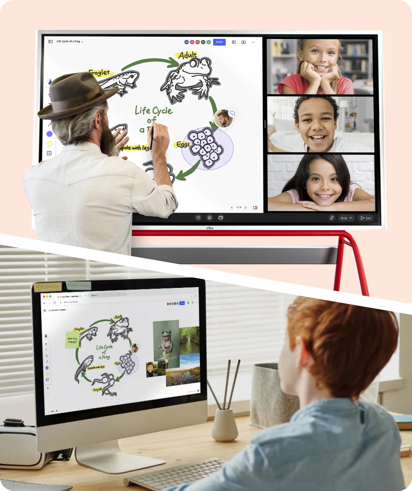 For collaborative projects, there are no limits on who can join or how long they can work together. Whether your students are in the classroom, at home, or split between both, they can access materials and contribute to projects through Vibe Canvas with just one simple link—using their tablets, smartphones, or laptops.