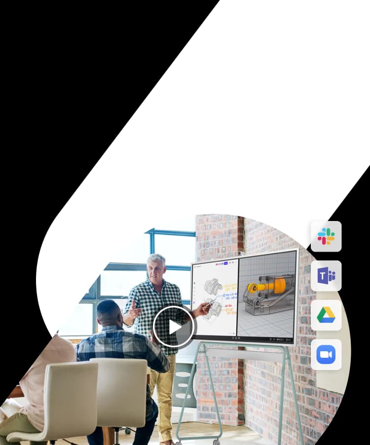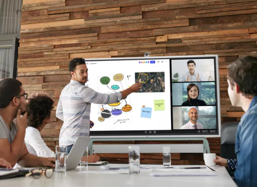 Vibe Board S1 has two built-in speakers, but no built-in microphone. The (optional) SmartCam C1 was designed for Vibe S1, and comes equipped with 6 omni-directional microphones, as well as noise and echo cancellation. Vibe Boards are also compatible with most USB-connected cameras and microphones, such as Logitech BRIO, Owl Camera, Polycom Studio, and more.