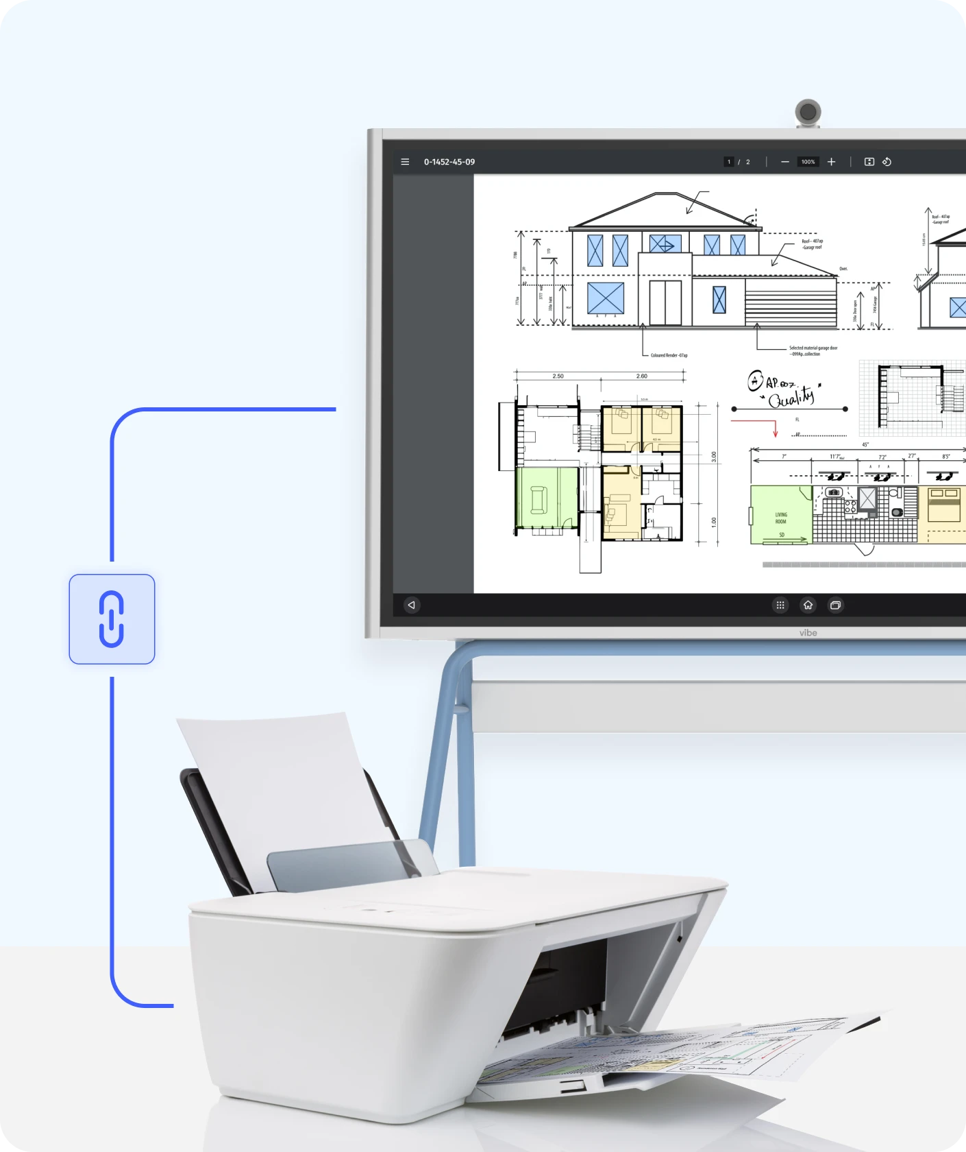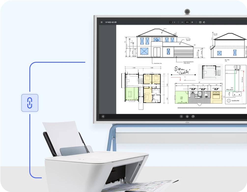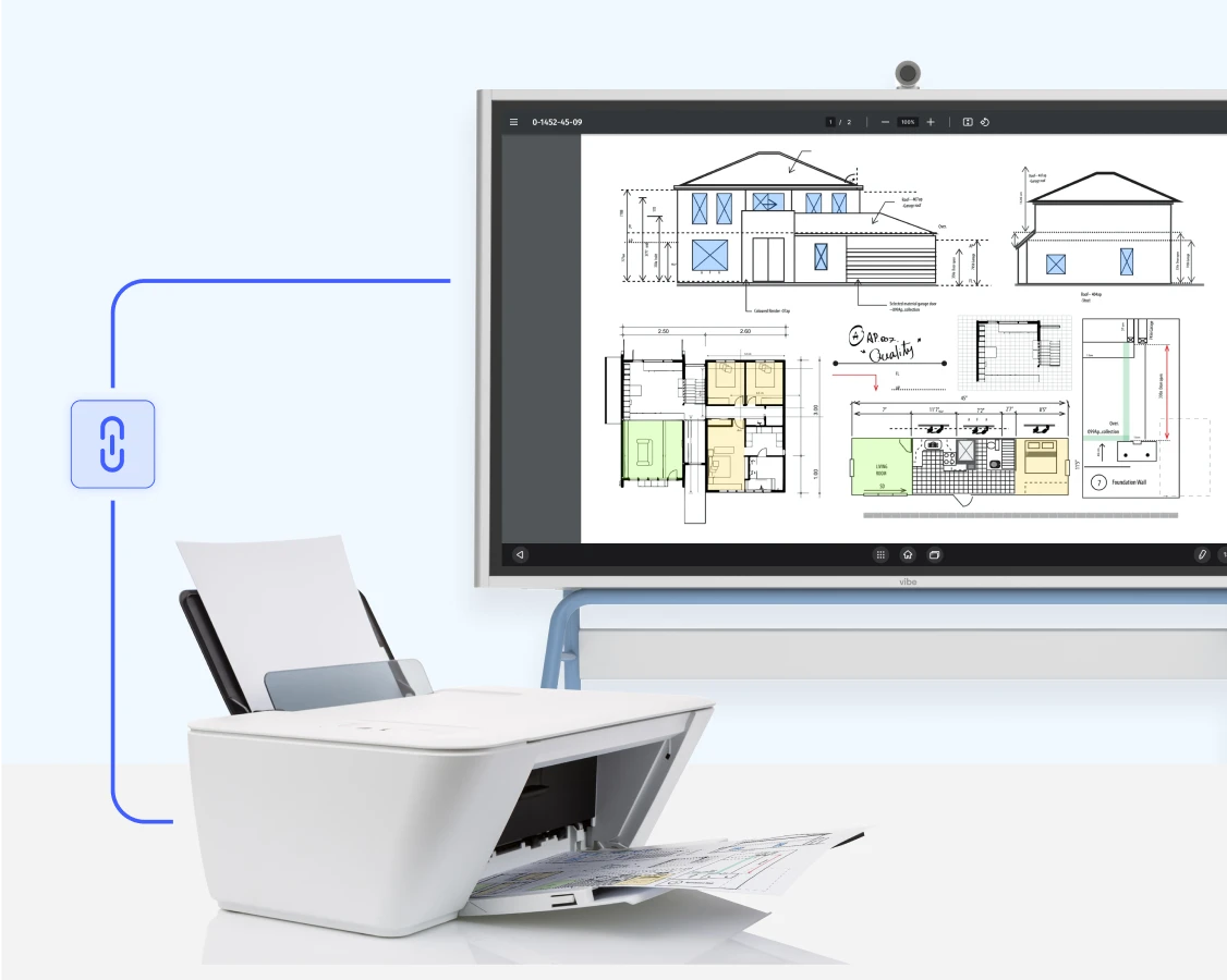 Add your printers to Vibe Board, and print any web page, blueprint, cloud-stored file, construction document, or other digitized asset with a single tap.