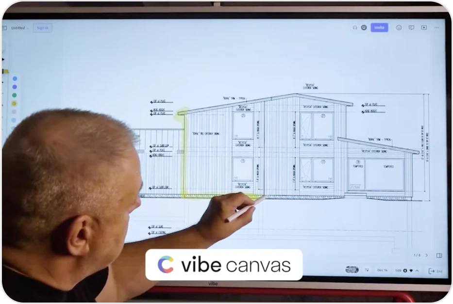 Yes. Vibe Board allows you to collaborate seamlessly on a computer, iPad, or phone from anywhere in the world with our cloud-based whiteboard software, Vibe Canvas. From there, you could jot an idea down on the go on your iPad, build on it with colleagues in the office on the Board, and share it for review with stakeholders remotely.
