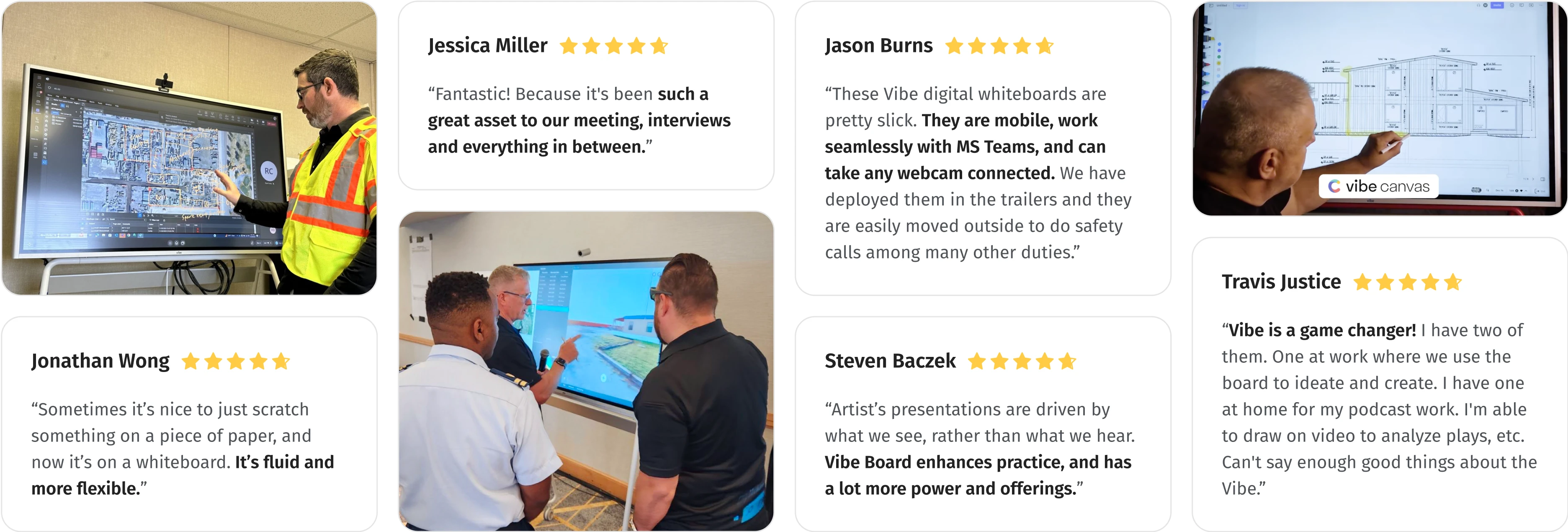 “Vibe is a game changer! I have two of them. One at work where we use the board to ideate and create. I have one at home for my podcast work. I’m able to draw on video to analyze plays, etc. Can’t say enough good things about the Vibe.”