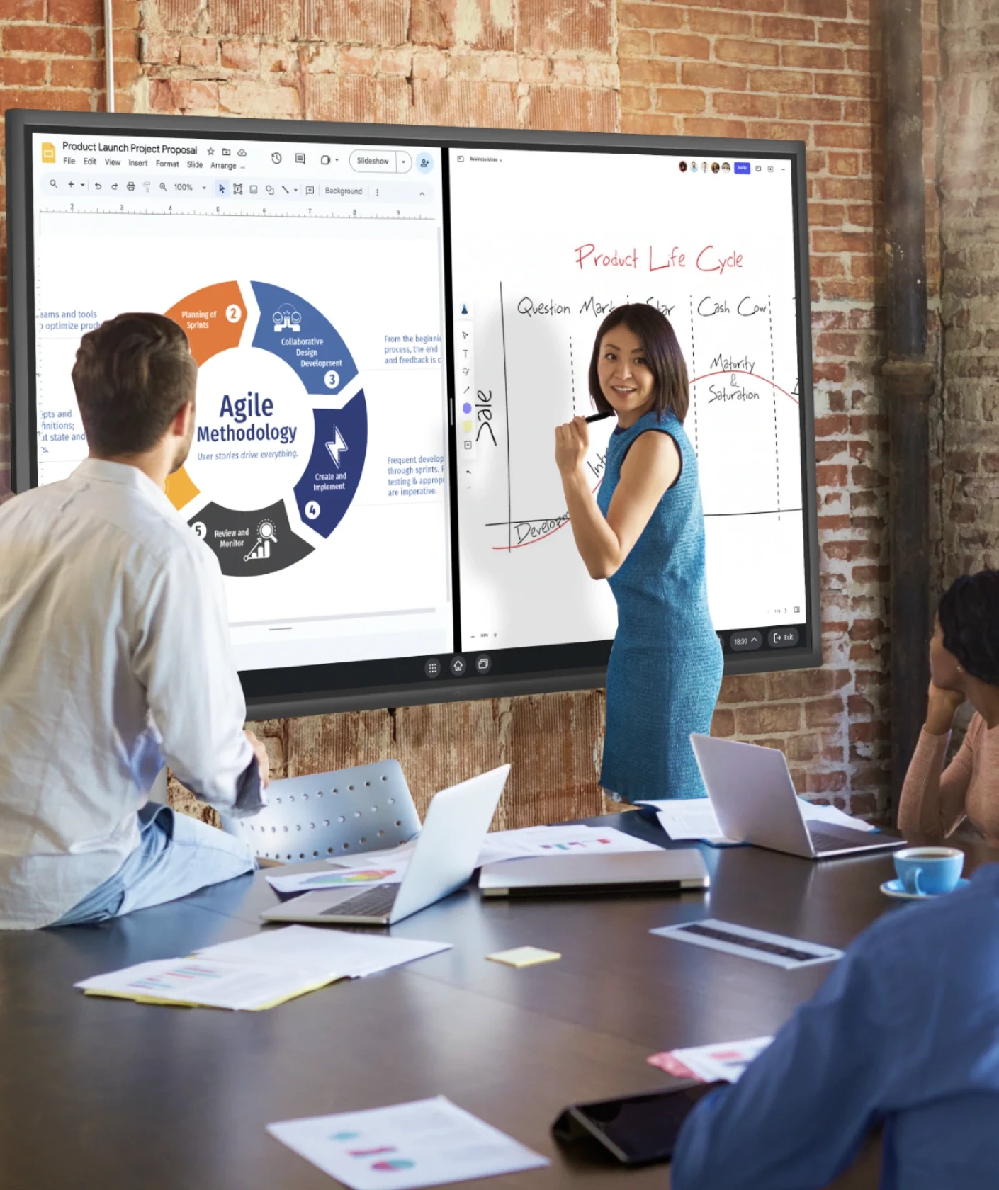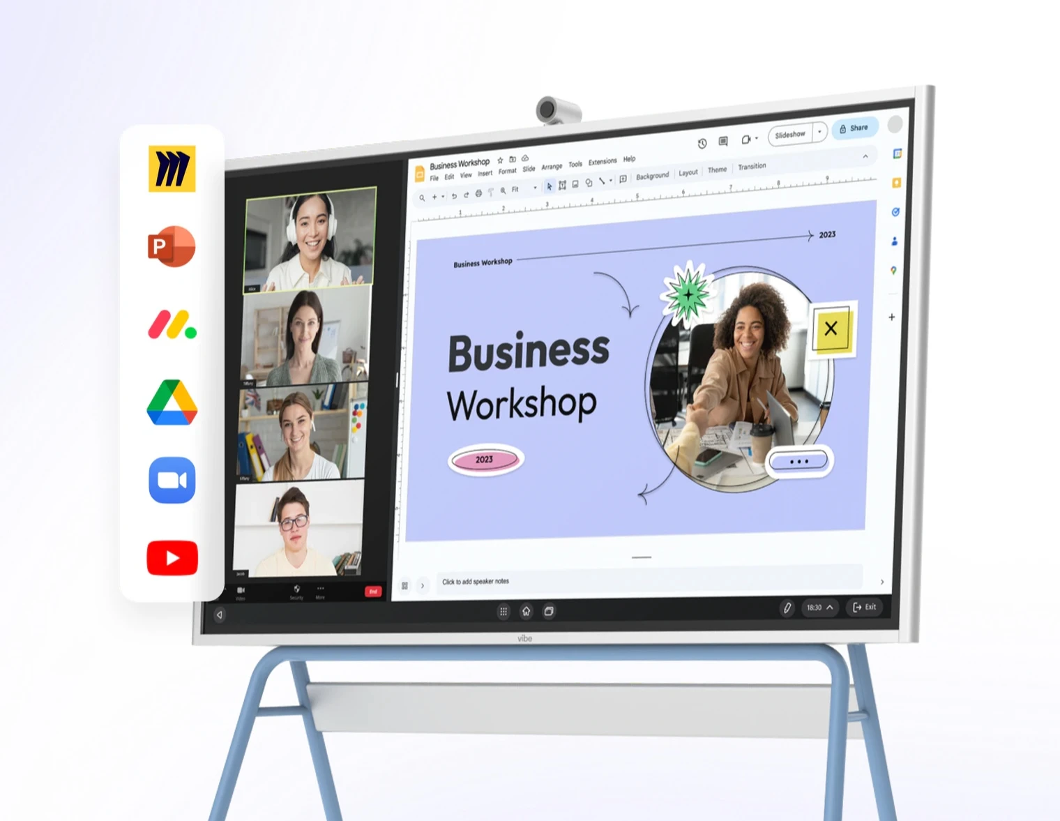 Yes! Vibe Board S1 55″ supports Microsoft 365 apps. You can directly access and edit Office files through the Chrome browser, or install the Microsoft Office Android Tablet Version on Vibe Board for more touchscreen capabilities. Microsoft Teams is also supported. Vibe Board also supports Google Workspace apps, so you can open, edit, and auto-save Google Docs, Slides, Sheets, and more. See all supported apps here. There is no special licensing required beyond what you’re currently using to access your accounts.