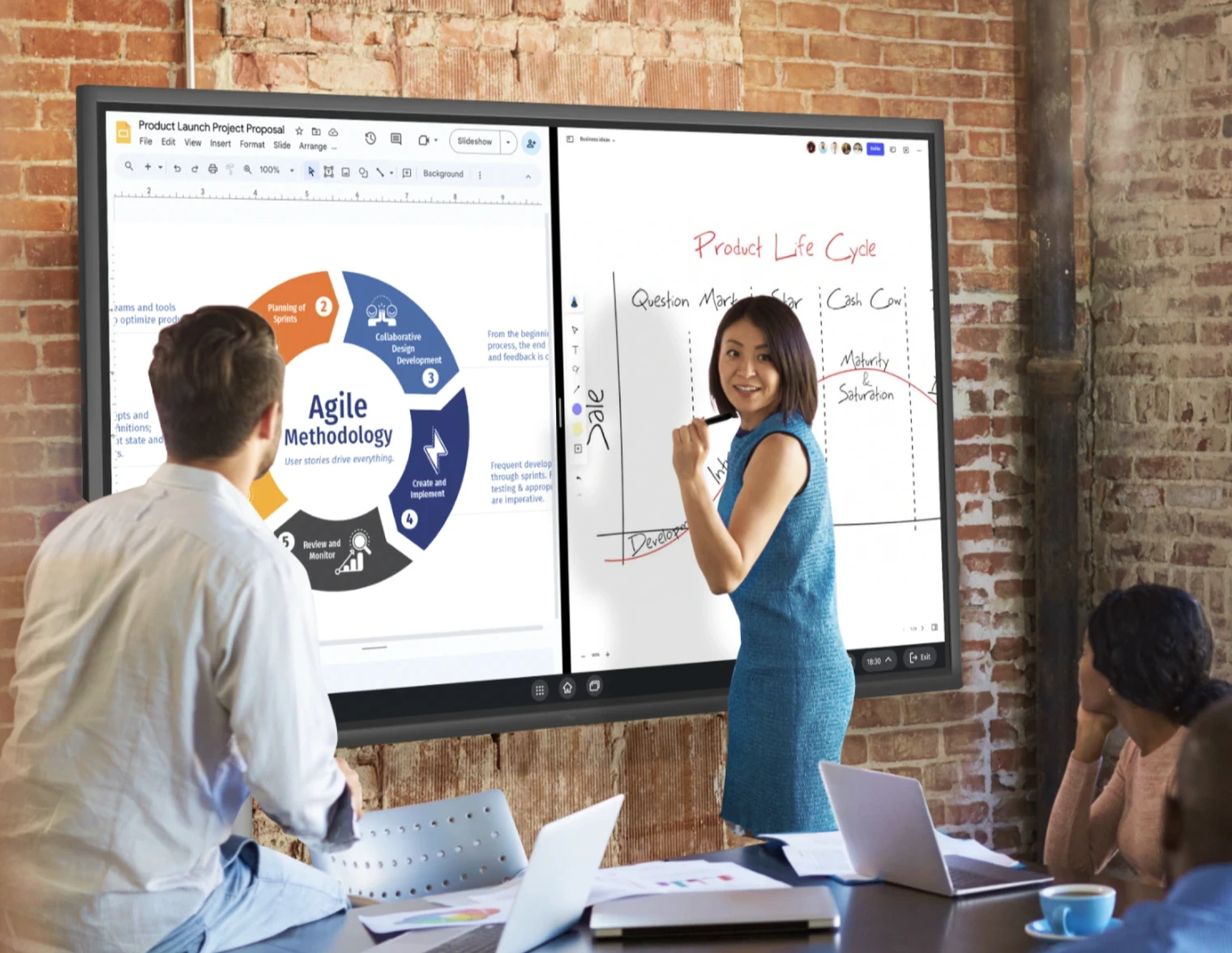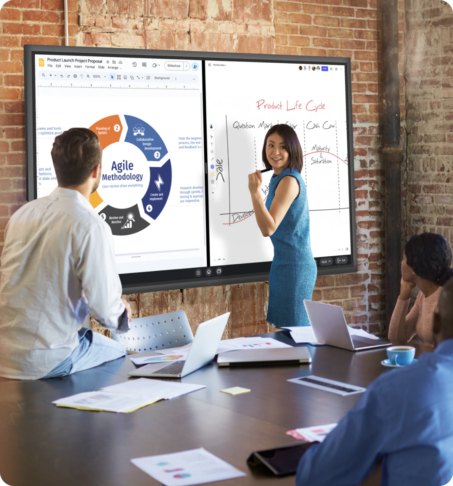 Boost your presentation with Vibe Board's split mode. Run diverse content side by side.