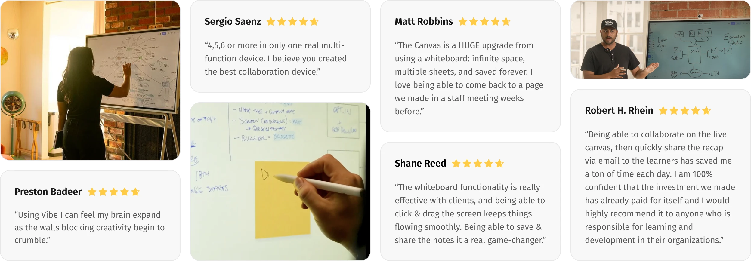 “Being able to collaborate on the live canvas, then quickly share the recap via email to the learners has saved me a ton of time each day. I am 100% confident that the investment we made has already paid for itself and I would highly recommend it to anyone who is responsible for learning and development in their organizations.”