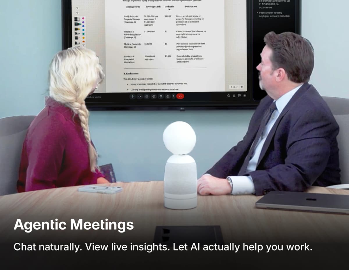 4K UHD camera, 360° audio, calendar sync. Full AI conferencing system built right in.