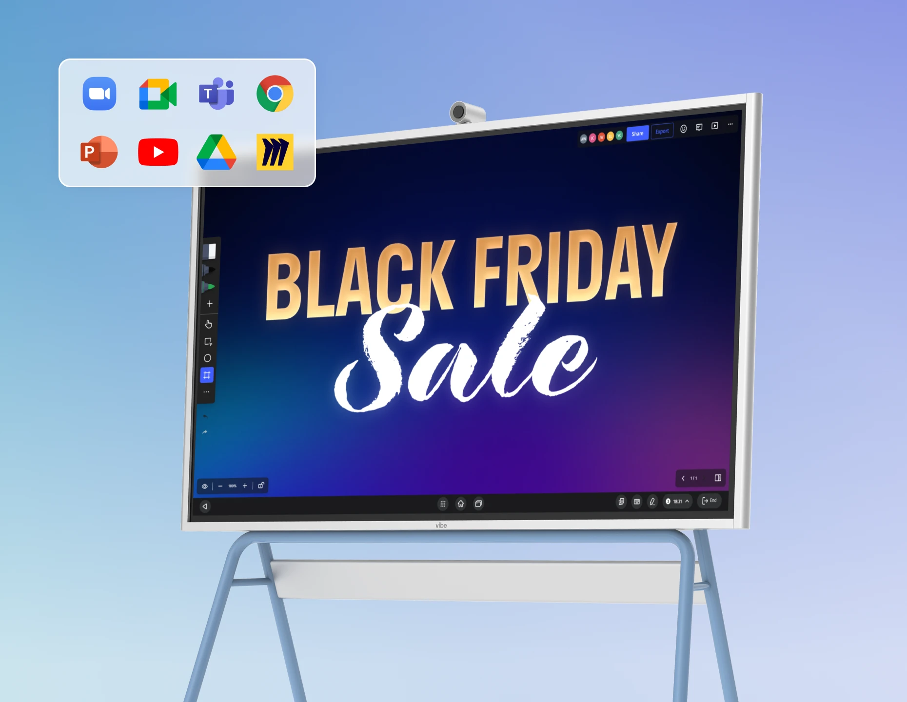 Yes! Vibe Board S1 supports Microsoft 365 apps. You can directly access and edit Office files through the Chrome browser, or install the Microsoft Office Android Tablet Version on Vibe Board for more touchscreen capabilities. Microsoft Teams is also supported. Vibe Board also supports Google Workspace apps, so you can open, edit, and auto-save Google Docs, Slides, Sheets, and more.