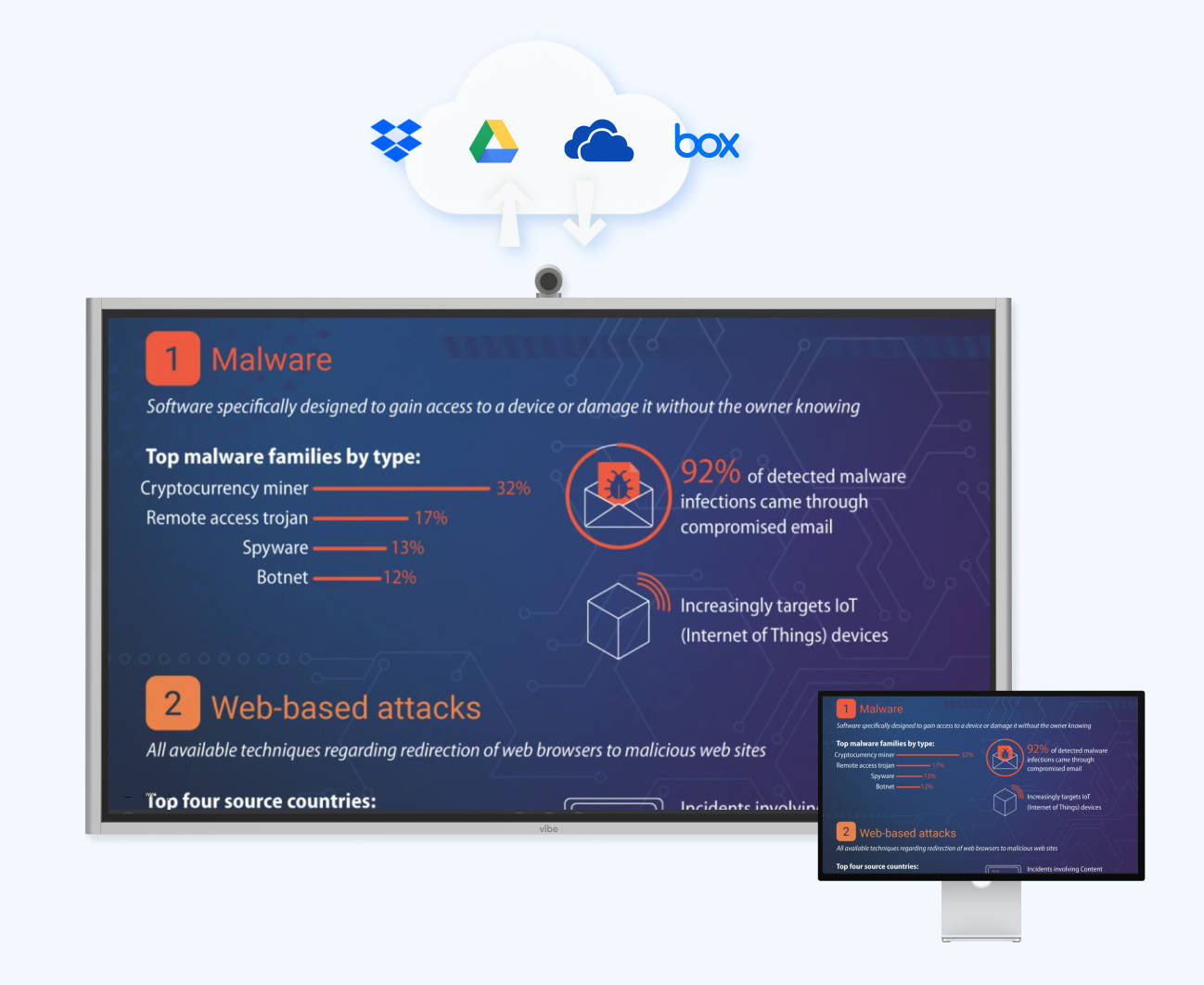 Work with the apps you love Vibe Seamlessly integrates your favorite apps such as Dropbox, Google Suite, Slack, Miro, Microsoft Teams, and Figma for a productivity boost.